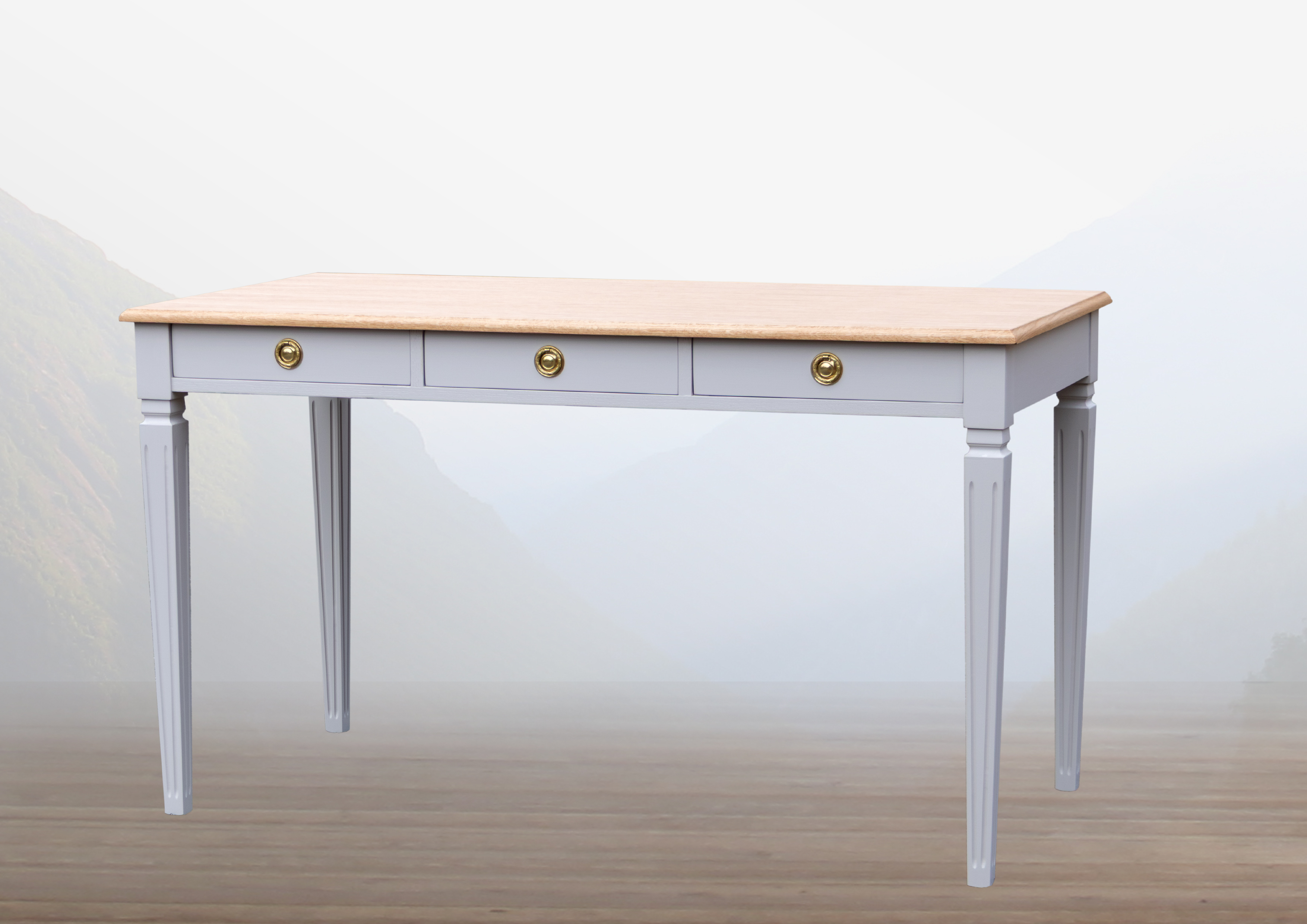 Skrivbordet har en praktisk hylla och är målat i äggoljetempera. Mått 120x60 höjd 75 cm, men det går at beställa andra mått.